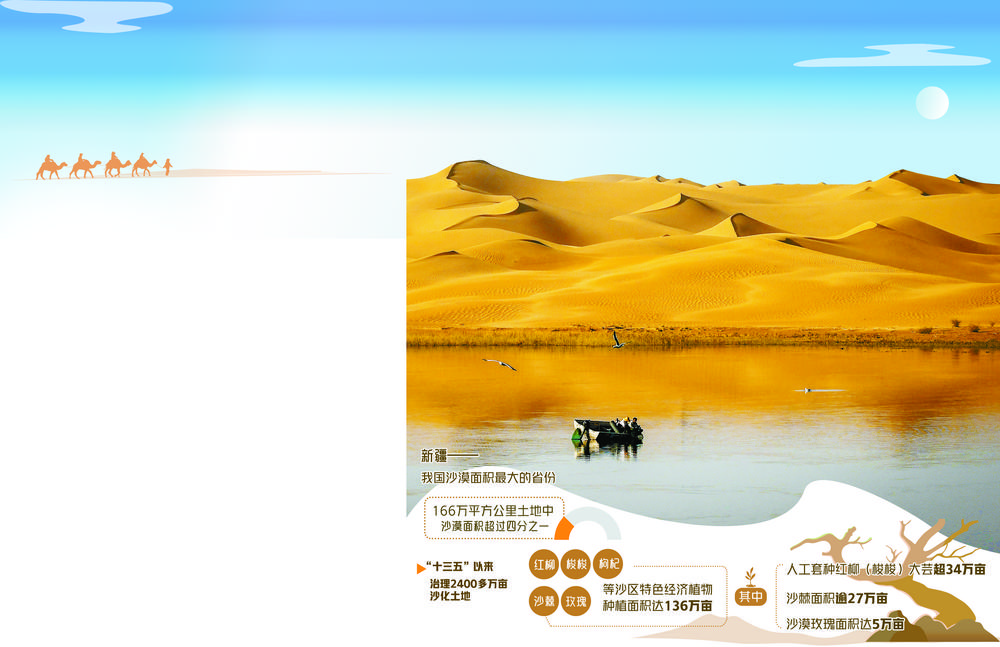 新疆是我国沙漠面积最大的省份,沙漠占自身面积四分之一以上。该怎样唤醒沉睡的沙漠资源,实现经济高质量发展与生态环境保护“并驾齐驱”?经济日报记者调研发现,新疆将发展沙漠经济作为实现生态保护和脱贫致富的有效举措,沙海播绿步伐持续加快,特色产业发展不断壮大,经济发展有了新看点。