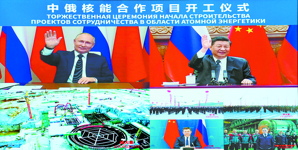 左图 5月19日下午,国家主席习近平在北京通过视频连线,同俄罗斯总统普京共同见证两国核能合作项目——田湾核电站和徐大堡核电站开工仪式。新华社记者 黄敬文摄