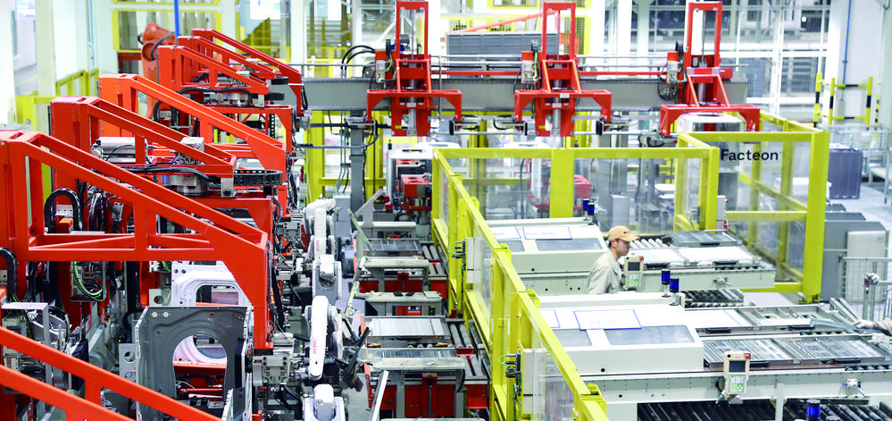 5月18日,在位于山东自贸试验区青岛片区的海尔中德智慧园区,洗衣机互联工厂在加紧生产。依托5G、人工智能等技术的发展,该园区实现了VR培训、AR远程维保、AI人机交互等智能应用场景,园区智能化水平不断提升。张进刚摄(中经视觉)