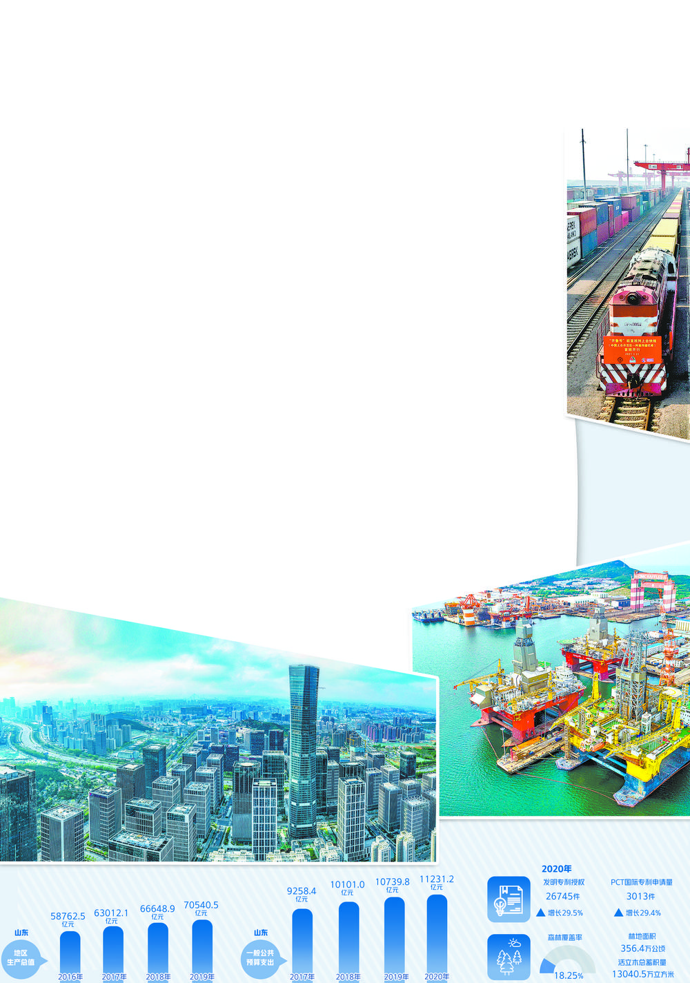 在革命、建设、改革开放各个历史时期,山东始终在中国共产党坚强领导下,与时代同步、与祖国同行,不断书写历史、创造辉煌。党的十八大以来,山东努力把习近平总书记重要指示要求和党中央决策部署在山东落地生根、开花结果。进入“十四五”、开启新征程,山东将坚持生态优先、绿色低碳发展,全面开创新时代现代化强省建设新局面,以优异成绩庆祝建党100周年。