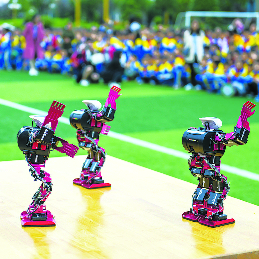 5月21日,湖南省科协组织的科普大篷车走进永州市道县第二小学,学生们观看机器人、液氮实验、空气炮、航模飞行等科技表演,近距离感知科技魅力。蒋克青摄(中经视觉)