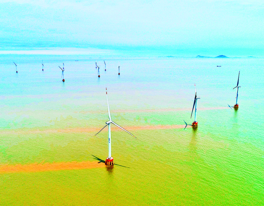 5月16日,位于浙江舟山北部海域的岱山4号海上风电场并网接入工程顺利投运,开始正式并网运行发电。该电量将全部用于浙江舟山绿色石化基地,持续为舟山绿色基地注入绿色动力。 新华社记者 徐 昱摄