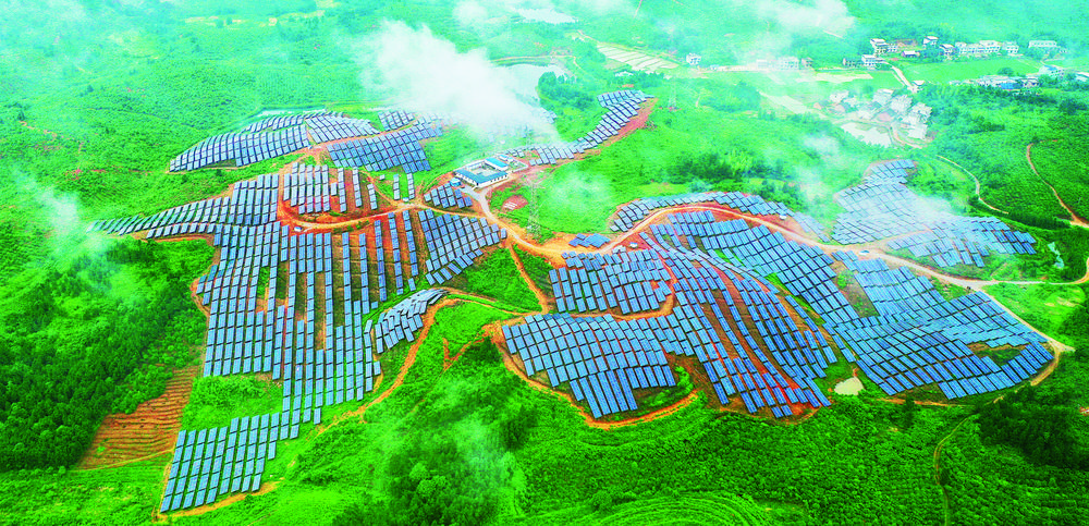 5月23日,湖南省常宁市西岭镇小松柏村,光伏发电站蔚为壮观。近年来,常宁市依托资源优势,因地制宜积极发展太阳能、水电等清洁能源,既减少碳排放,助力碳达峰,又有效助推乡村振兴,助民增收,促进生态效益与经济效益双丰收。