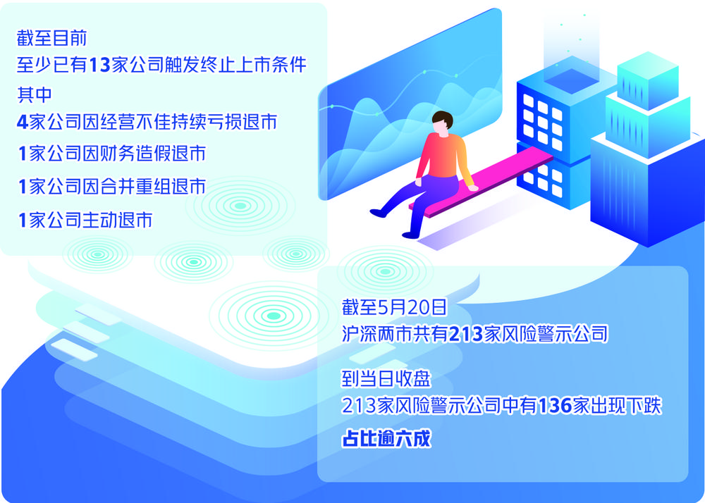 当前,退市新规的威慑力和市场认可度已经有所彰显。记者注意到,新规发布以来,A股市场中的ST等绩差股经历了一波下跌。根据同花顺数据显示,截至5月20日,沪深两市共有213家风险警示公司,到当日收盘,213家风险警示公司中有136家出现下跌,占比逾六成。另外,截至5月20日收盘,沪深两市股价低于2元的公司已达70家。