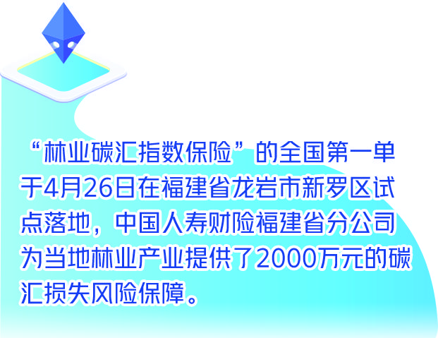 2020年中央经济工作会议将“做好碳达峰、碳中和工作”列为2021年的重点任务之一。当前列出的时间表为,中国将力争于2030年前实现碳达峰,在2060年前实现碳中和。2021年3月15日召开的中央财经委员会第九次会议,提出了实现碳中和的主要举措和六大路线,其中重要内容之一是要增强森林蓄积量和固碳能力。而此方面的绿色金融创新,中国人寿财险在福建无疑是走在了前列。