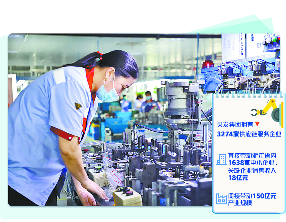 位于浙江省宁波市的贝发集团以制笔起家,是目前国内文具行业的龙头企业。贝发集团整合产业链、供应链,形成“一支笔、一条链、一个平台”的创新发展战略。如今,贝发集团拥有3274家供应链服务企业,直接带动浙江省内1638家中小企业、关联企业销售收入18亿元,间接带动150亿元产业规模,新增产业链就业岗位1万个以上。
