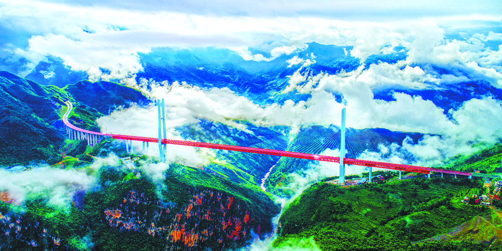 ④位于杭瑞高速贵州境内毕节至都格段的世界第一高桥——北盘江大桥。它的建成通车,实现了西南地区交通干线的大贯通。龚小勇摄(中经视觉)