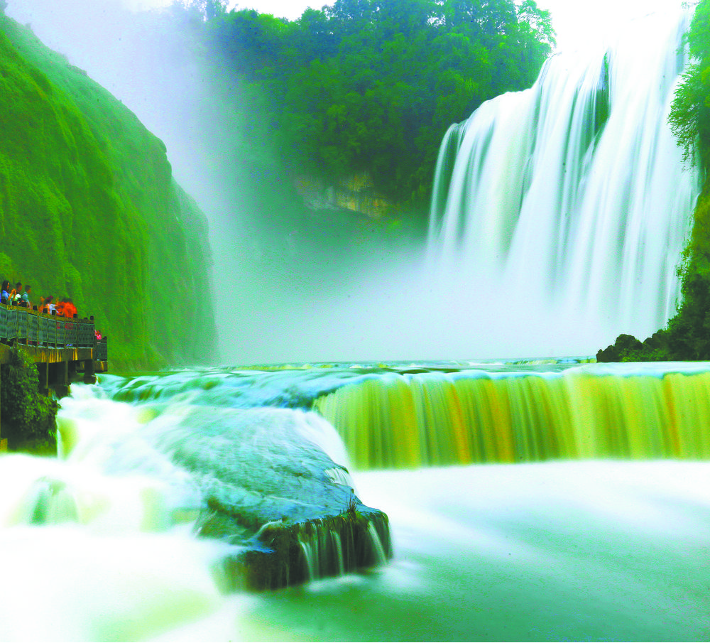 ⑤游人在位于安顺市镇宁县的黄果树风景名胜区观赏瀑布。贵州因地制宜发展全域旅游,推动旅游业持续增长。