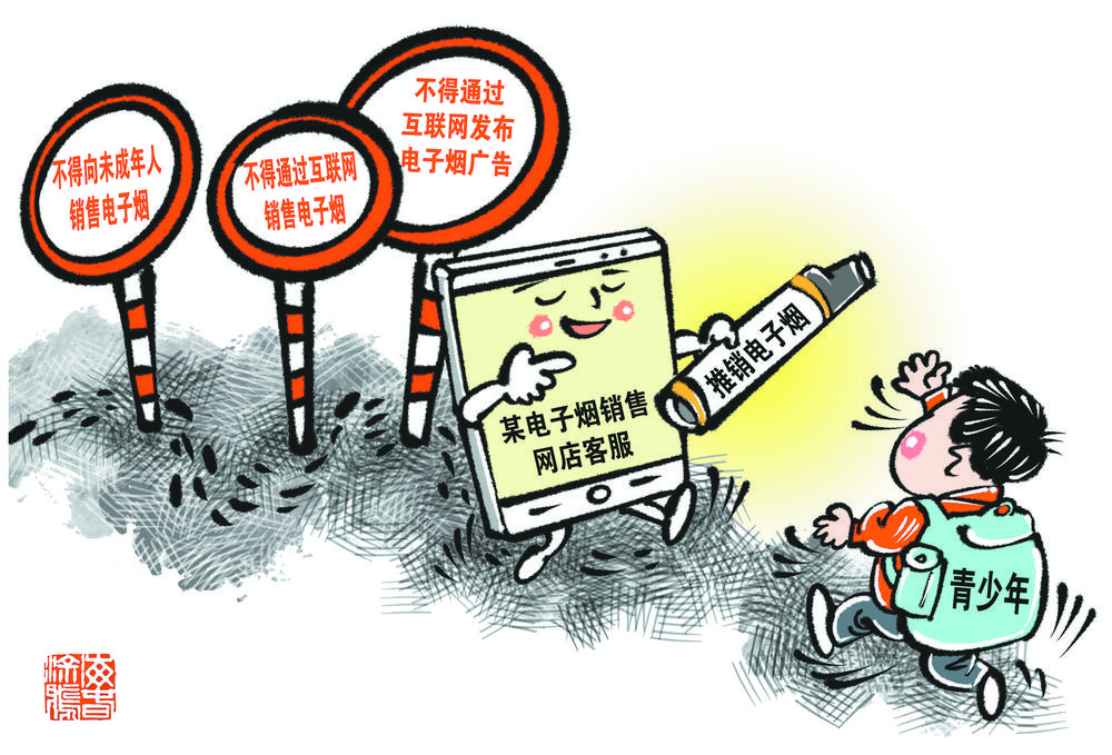 时下,吸电子烟被一些青少年视为“时尚”。近日,国家卫健委发布的健康报告显示,电子烟可能更易使人抽上卷烟,这在青少年中尤为明显。截至目前,国家发布了多个保护未成年人免受电子烟侵害的禁令,然而仍有商家变换招数“围猎”青少年。有个别商家把电子烟伪装成玩具销售,淡化其“烟”的属性;也有商家打着“戒烟神器”“安全放心”的广告迷惑、吸引青少年。对此,有关部门应加强对电子烟行业监管,尽快推进制定电子烟相关管理条例和国家标准,引导青少年拒吸、远离电子烟。(时 锋)