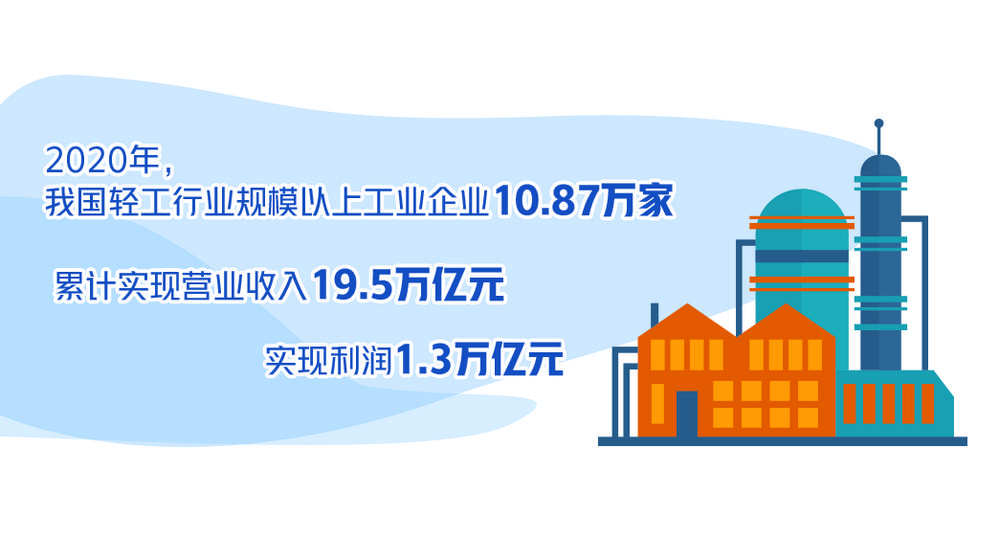老百姓吃到肚子里的、挂在身上的、摆在屋里的,很多都是轻工产品,轻工业是重要的民生行业,是满足人民美好生活需要的主力军。2020年,我国轻工行业规模以上工业企业10.87万家,累计实现营业收入19.5万亿元,实现利润1.3万亿元。