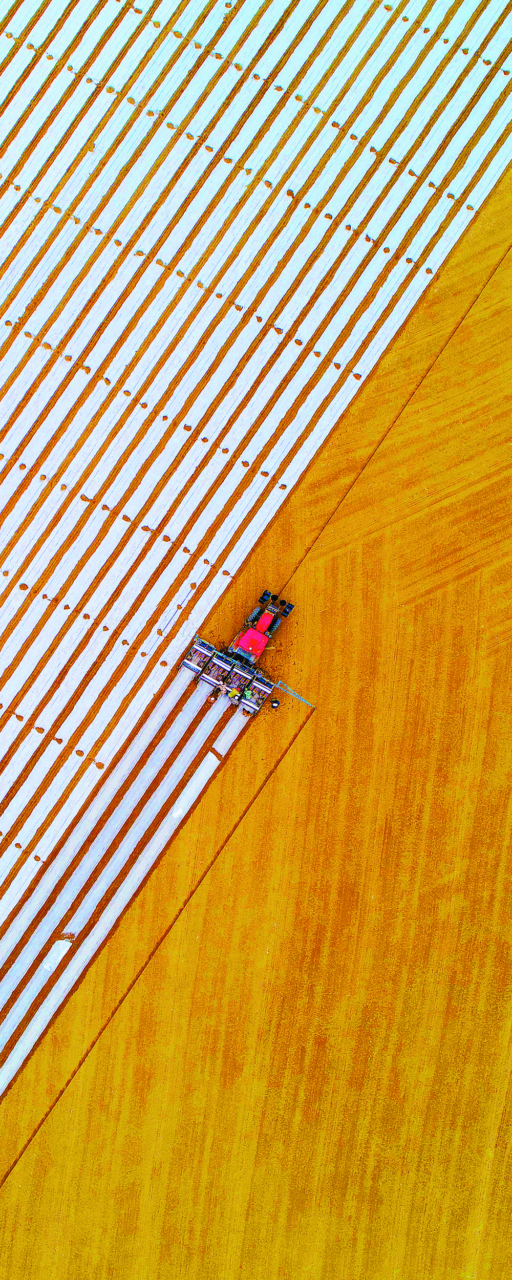 ①新疆生产建设兵团第二师二十九团装有GPS卫星定位导航系统的大型播种机正在播种棉花。 杜炳勋摄(中经视觉)