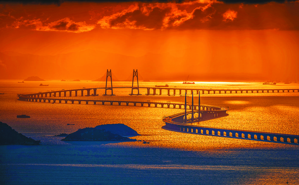②港珠澳大桥是当今世界上最长的跨海大桥,带动粤港澳大湾区的发展驶入快车道。邱新生摄(中经视觉)