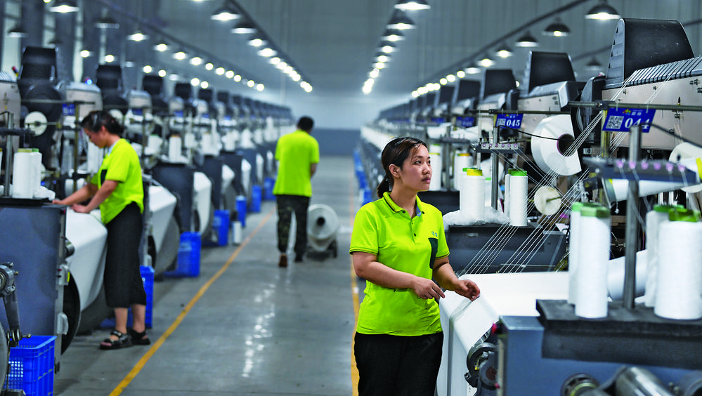 6月8日,江苏省盱眙县开发区新龙腾纺织厂员工正在忙生产赶订单。近年来,该县秉持“难事我办”的服务理念,积极营造营商环境,对企业进行“保姆式”服务,辖区内的电子电器、装备制造、新能源、纺织服装等企业轻装上阵,积极生产开拓市场。 本报记者 李景录摄