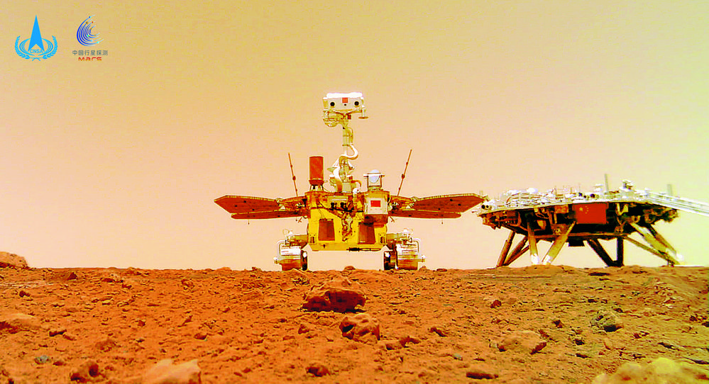 本报北京6月11日讯(记者姜天骄)国家航天局11日在北京举行天问一号探测器着陆火星首批科学影像图揭幕仪式,公布了由祝融号火星车拍摄的着陆点全景、火星地形地貌、“中国印迹”和“着巡合影”等影像图。首批科学影像图的发布,标志着我国首次火星探测任务取得圆满成功。截至6月11日,祝融号火星车在火星表面已工作28个火星日。