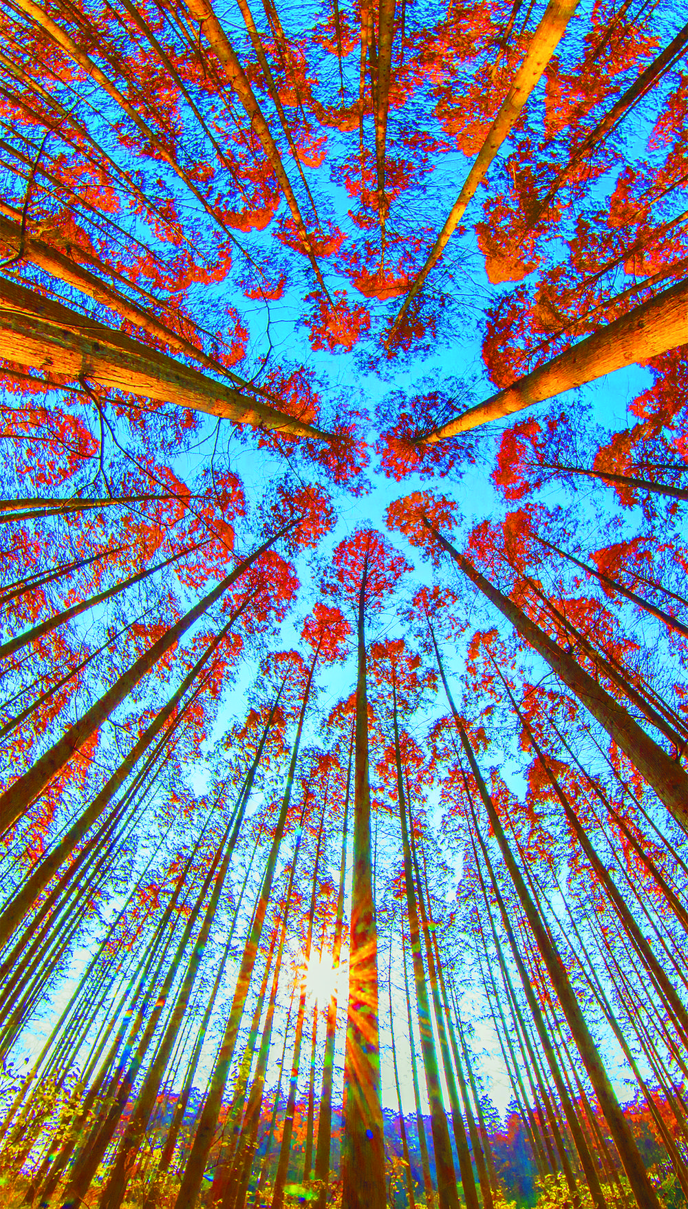 ④江苏省泗洪县洪泽湖湿地,水杉在蓝天的映衬下,五彩斑斓,美不胜收。张连华摄(中经视觉)