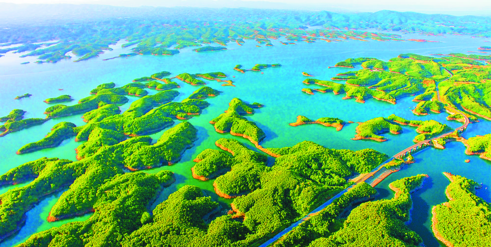 ②航拍的南水北调中线水源地丹江口水库丹江口市三官殿办事处水域。丹江口水库水质一直保持在Ⅱ类以上,出库水质85%以上稳定保持在Ι类标准。