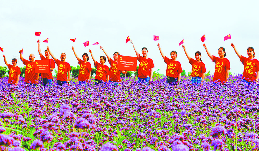 图④ 江苏连云港市灌云县伊山镇组织百名党员在该县伊甸园景区参加快闪活动。吴 磊摄(中经视觉)