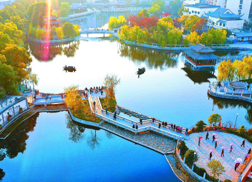 ⑥江西省南昌市西湖区孺子亭公园湖光水色尽收眼底。近年来,西湖区实施孺子亭景区改造工程,在保留公园古色古香古韵的同时,增加了柳浪荷风、湖光在望等9个景点,一年四季景色美如画。