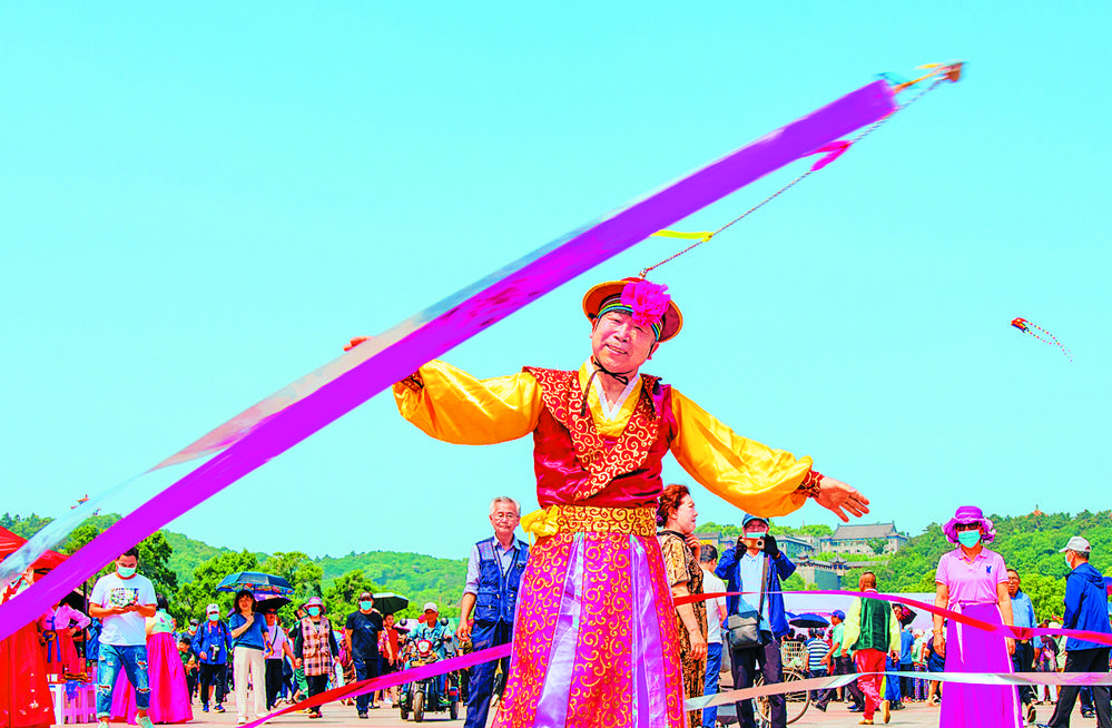 ③吉林省吉林市第20届朝鲜族民俗文化节上,老人在表演象帽舞。民俗文化节包含了文艺展演、文体赛事、朝鲜族民俗风情展示等多项活动。金生隆摄(中经视觉)