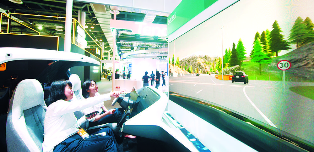 7月7日,观众在2021世界人工智能大会博览会上体验智能驾驶。当日,2021世界人工智能大会博览会在上海开幕,本届大会以“智联世界 无限可能”为主题,展现了人工智能发展的最新成果。龙 巍摄(中经视觉)