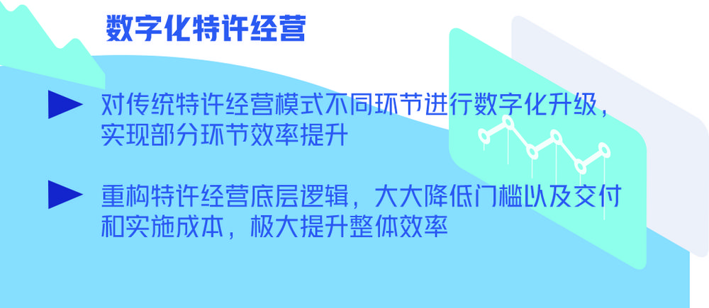 数字化特许经营不仅是对传统特许经营模式的不同环节进行了数字化升级,实现了部分环节的效率提升。更重要的是,传统特许经营的底层逻辑因数字化发生了重构,数字化减少甚至消除了特许经营权交易过程中各主体的信息不透明、不对称现象,大大降低了特许经营授权的门槛以及交付和实施的成本,使特许经营的整体效率得到极大提升。