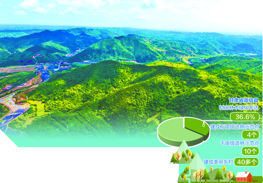 崇信县“三荒造林”、景观廊道、美丽乡村绿化等生态建设力度不断加大,绿色锦缎徐徐铺展。