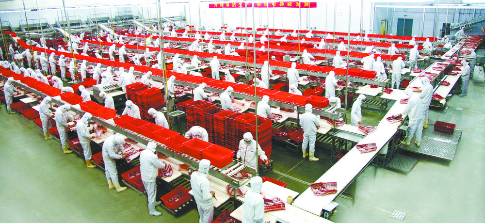 双汇负责企业管理的副总裁焦永丽告诉记者,双汇以畜禽屠宰和肉类精深加工为核心,向上游发展饲料业、养猪业、养鸡业,向下游发展包装材料、调味料、冷链物流、连锁商业、国际贸易等,形成了主业突出、行业配套完善的产业链,推动企业上下游联动发展。