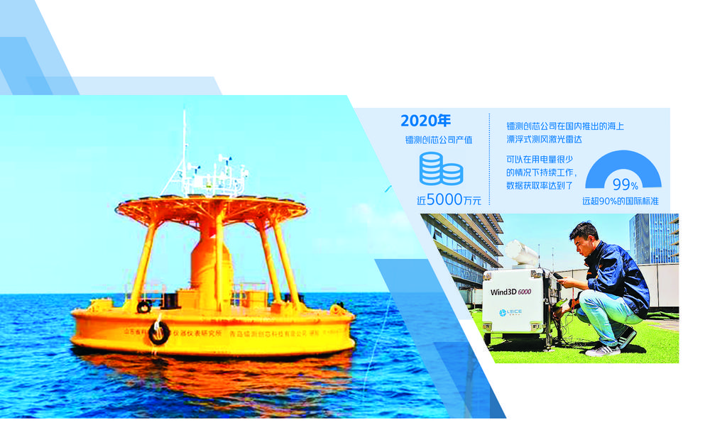 最终,镭测创芯公司在国内率先实现了海上漂浮式测风激光雷达产业化,成功推出了国产首套商用产品,并得到市场一致好评。“雷达长期泡在海水里都没问题,寿命可达到5年至10年,可以在用电量很少的情况下持续工作,数据获取率达到了99%,远超90%的国际标准。仅这个产品的转化过程我们研发就花费1000多万元。”王希涛说。