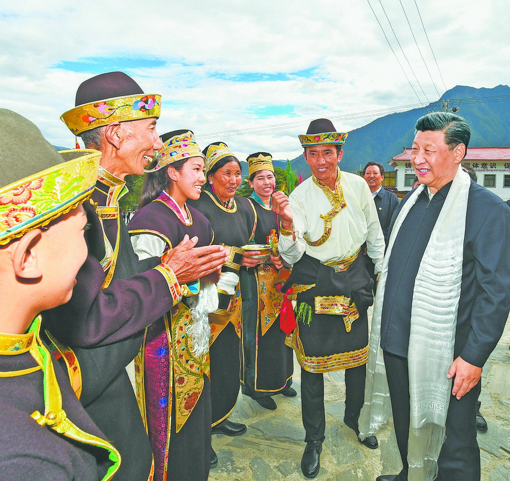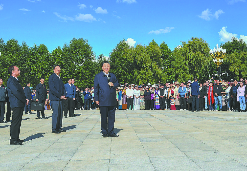 图⑤ 22日下午,习近平在布达拉宫广场,同游客和当地群众亲切交流。