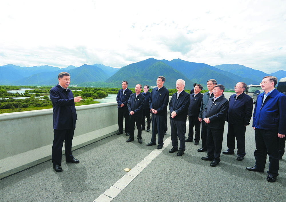图③ 21日上午,习近平在林芝尼洋河大桥考察雅尼湿地。