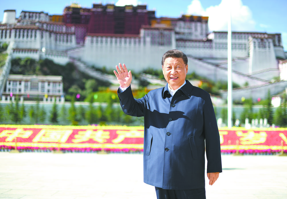图① 7月21日至23日,中共中央总书记、国家主席、中央军委主席习近平来到西藏,祝贺西藏和平解放70周年,看望慰问西藏各族干部群众。这是22日下午,习近平在布达拉宫广场考察时,向游客和当地群众挥手致意。 新华社记者 谢环驰摄
