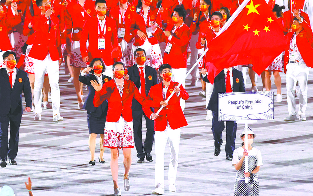 7月23日,第32届夏季奥林匹克运动会开幕式在日本东京举行。这是中国体育代表团入场。新华社记者 郑焕松摄