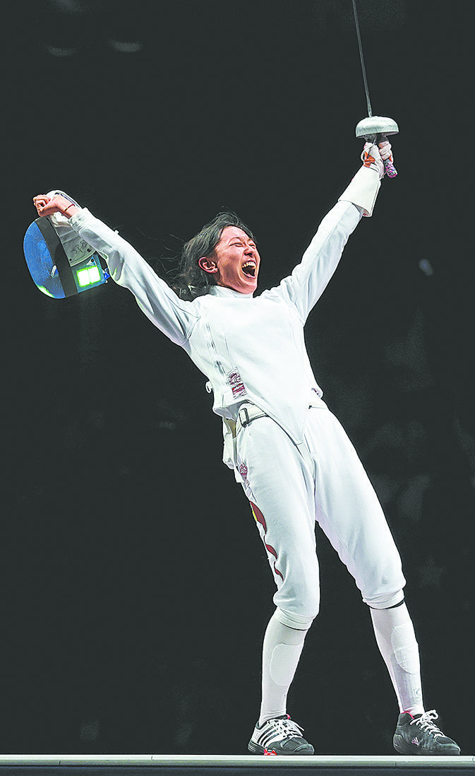 7月24日,在女子个人重剑决赛中,孙一文以11比10战胜罗马尼亚选手波佩斯库,夺得冠军。新华社记者 李 明摄