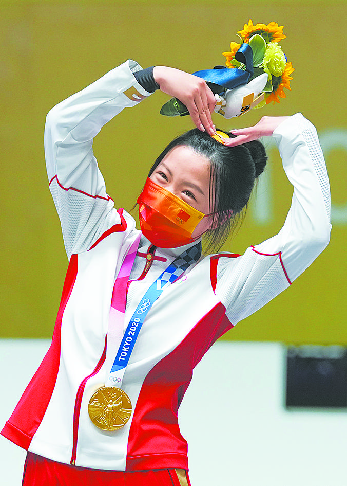 7月24日,在女子10米气步枪决赛中,杨倩凭借最后一枪逆转夺得东京奥运会首金。新华社记者 鞠焕宗摄