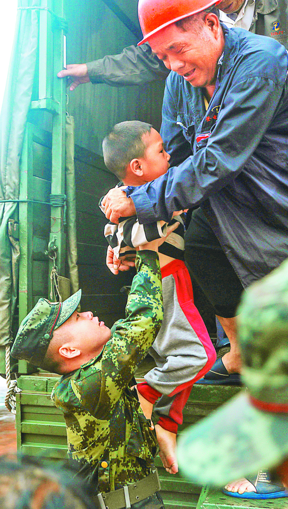 ▲7月20日,武警第一机动总队某支队官兵在河南登封转移受灾群众。 蔡霖伟摄(中经视觉)