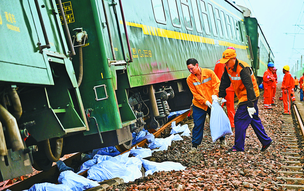▲7月21日,受河南特大暴雨影响,京广线郑州市境内部分区段于7月20日出现边坡溜坍险情,中铁郑州局集团干部职工对京广线水害地点路基进行紧急抢修。王 玮摄(中经视觉)