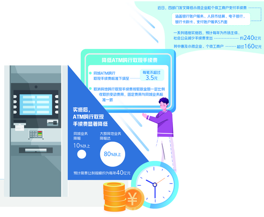 据统计,全部降费措施实施后预计每年减少手续费支出约240亿元。其中,惠及小微企业、个体工商户超过160亿元。