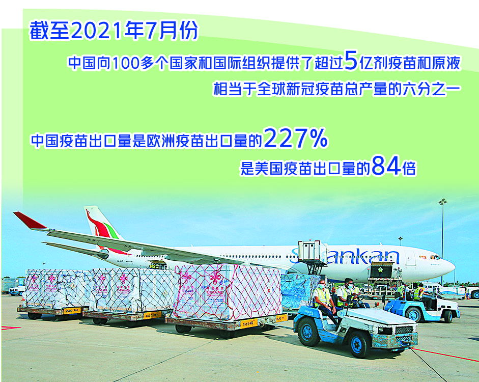 李保东表示,中国在向发展中国家提供疫苗方面贡献最大,对外援助和出口疫苗的数量超出了其他国家的总和,以实际行动落实了自己的承诺和主张。截至2021年7月份,中国已向100多个国家和国际组织提供了超过5亿剂疫苗和原液,相当于全球新冠疫苗总产量的六分之一。中国的疫苗出口量是欧洲疫苗出口量的227%,是美国疫苗出口量的84倍。除了疫苗成品的出口,中国还在帮助其他发展中国家建立疫苗的本地生产线,有的已经投产。中国还积极支持对广大发展中国家豁免新冠疫苗知识产权。