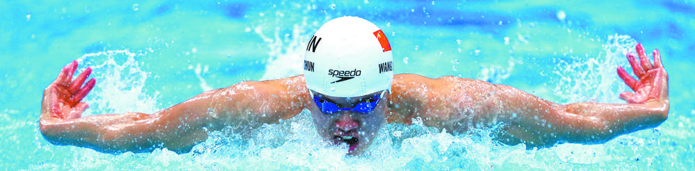 图④ 在游泳男子200米个人混合泳决赛中,汪顺夺冠。新华社记者 许 畅摄