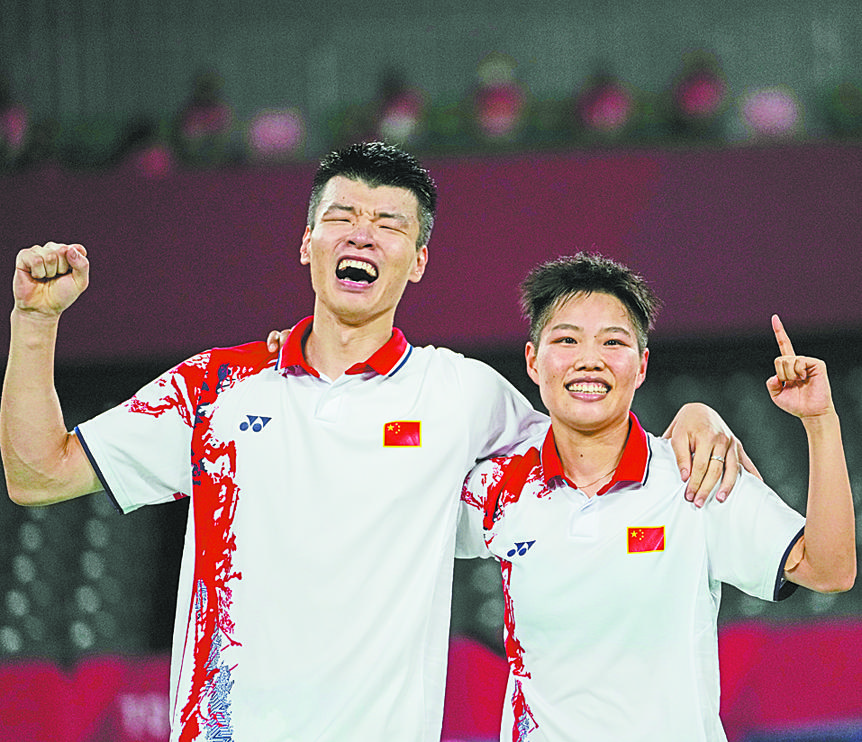 图③ 在羽毛球混合双打决赛中,王懿律/黄东萍获得冠军。新华社记者 李一博摄