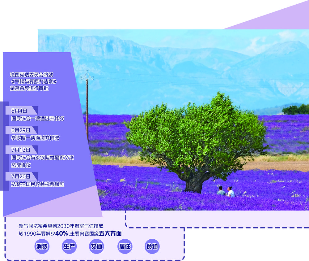 7月27日,法国宪法委员会收到一项极受关注的法案,将就该法案是否合宪进行审批,这便是7月20日在国民议会以233票对35票通过的《气候与复原力法案》,也被称为新气候法案。不出意外,该法案将在几周内公布具体细节,法国生态转型新阶段即将到来。