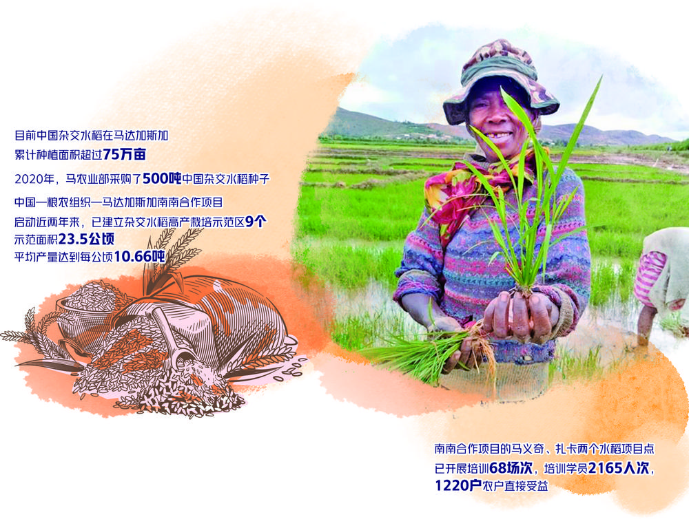 2019年,马达加斯加政府将提高粮食产量作为国家发展目标之一,提出在2024年前实现国家粮食自给。为帮助该国实现这一目标,中国—国际粮农组织—马达加斯加南南合作项目于2019年10月份启动。
