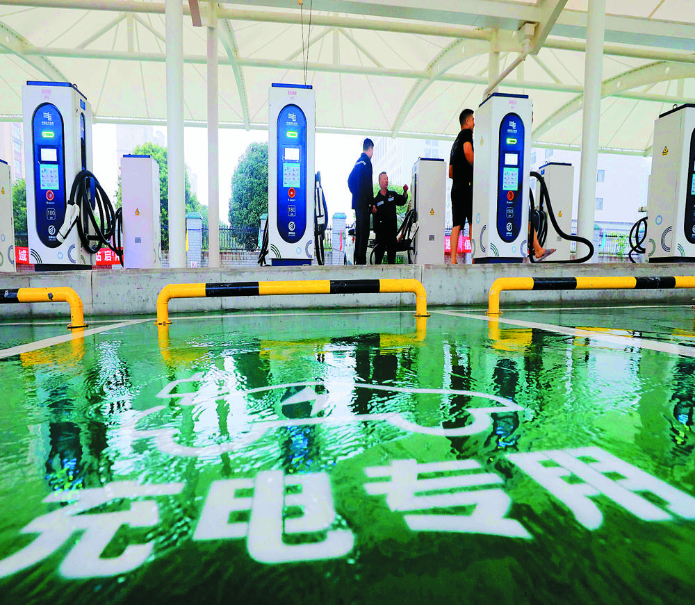 广西融安县综合能源服务站,车主使用柔性充电堆充电。该服务站是广西区内第一座县域综合能源服务站。 谭凯兴摄 (中经视觉)