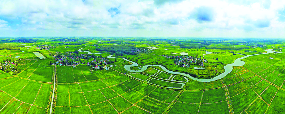 八月五日,安徽肥东县八斗镇九店社区王贵至小河南地段,稻田、村庄、河渠相映成趣。近年来,当地推进“小农水”民生工程项目建设,不仅在防汛中发挥了重要作用,也为发展特色种植养殖产业提供了基础。高德升摄(中经视觉)