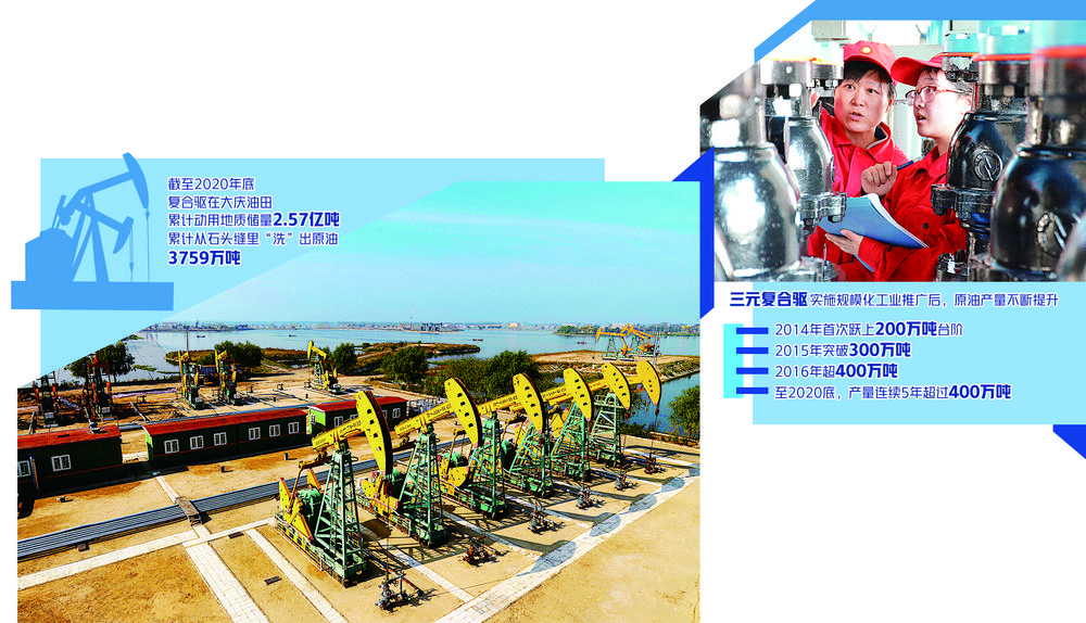 依托不同时期国家重大专项、中国石油重大专项科技攻关等一系列重大科研任务,大庆油田自主创新的复合驱技术大幅度提高了原油的采收率,科技创新为老油田带来曙光。