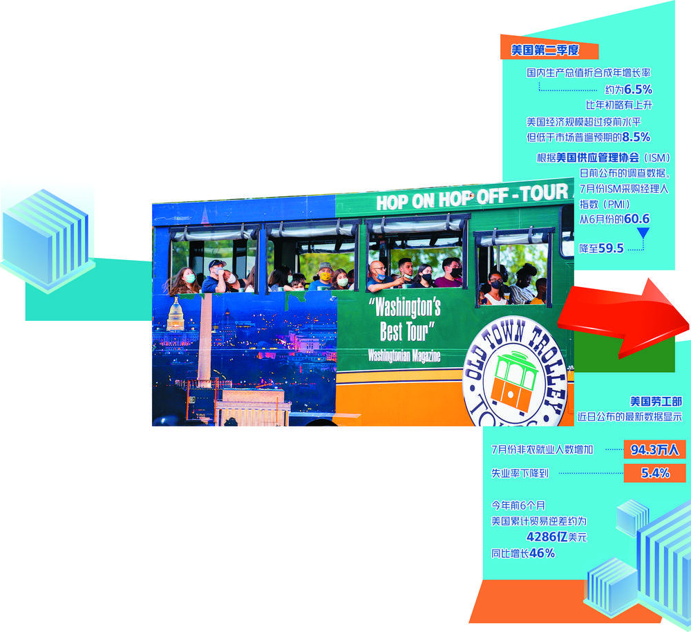 美国商务部最新发布的数据显示,美国第二季度国内生产总值(GDP)折合成年增长率约为6.5%,比年初略有上升,美国经济规模超过疫前水平。