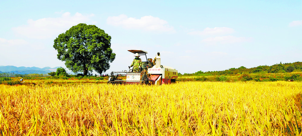 8月12日,江西新余市渝水区界水乡黄溪村村民在收割水稻。今年以来,新余市渝水区认真落实国家惠农政策,出台了一系列促进粮食生产的政策措施,农民种粮积极性大增,全区水稻种植面积达73万亩,喜获丰收。