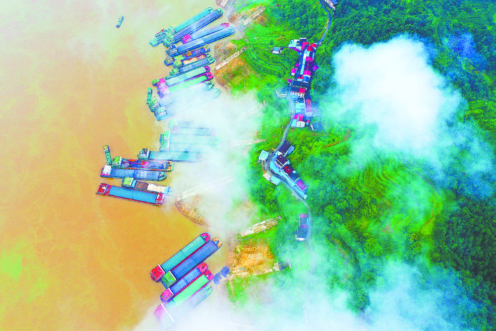 8月17日,三峡大坝上游的湖北秭归县茅坪港码头停靠的客轮同时通过岸电桩接通岸电。据悉,历时3年,秭归县34个码头经过规范、取缔、整顿后,保留的18个客运、货运码头100%安装供电装置,实现了岸电全覆盖。黄善军摄(中经视觉)
