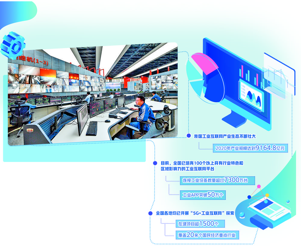 经过多年发展,我国工业互联网产业生态不断壮大,2020年产业规模达到9164.8亿元。目前,全国已培育100个以上具有行业特色和区域影响力的工业互联网平台,连接工业设备数量超过了7300万台,工业APP突破50万个,发展环境持续优化。