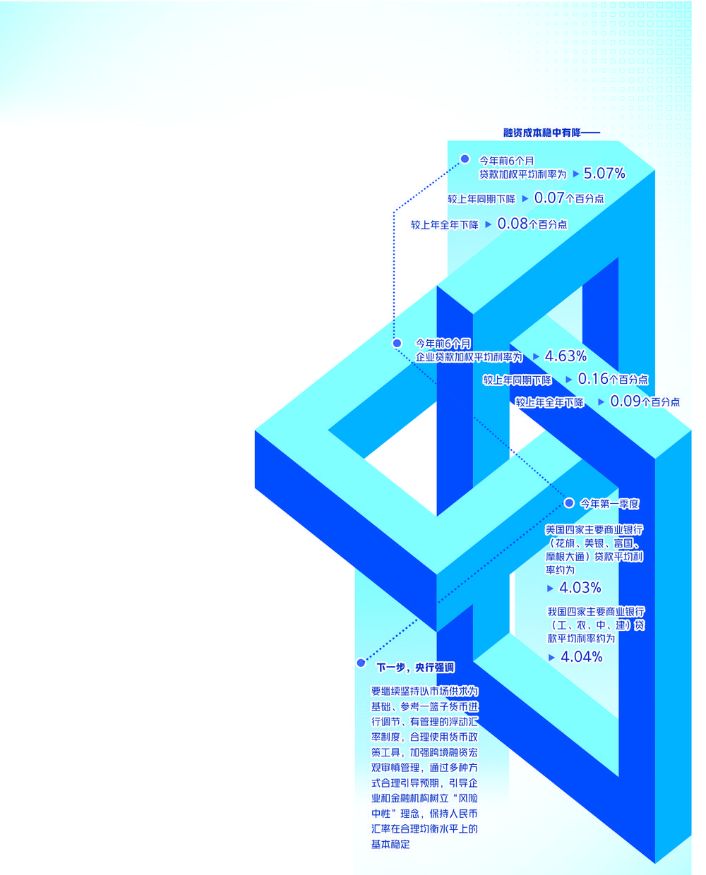 统计显示,今年前6个月,贷款加权平均利率为5.07%,较上年同期下降0.07个百分点,较上年全年下降0.08个百分点。值得关注的是,上半年,企业贷款利率降幅更大。前6个月企业贷款加权平均利率为4.63%,较上年同期下降0.16个百分点,较上年全年下降0.09个百分点,实体经济融资成本稳中有降。